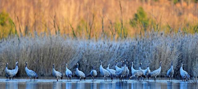 Für alle, die ganz in Ruhe die Kraniche erleben möchten, lohnt sich das frühe Aufstehen an einem Mittwoch oder Sonntag im Oktober. Noch im Morgengrauen starten die Führungen zum morgendlichen Flug der Kraniche zu ihren Nahrungsflächen.