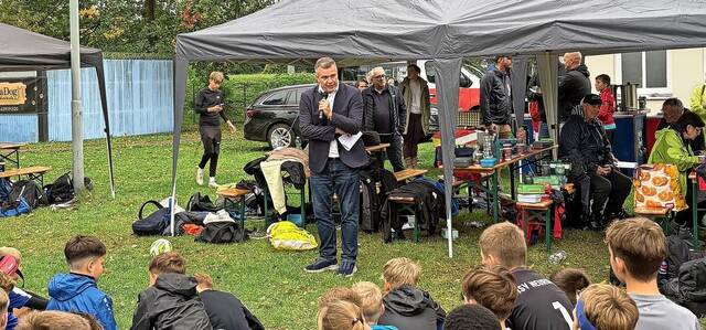 Die Leichtathletiksaison ist zwar nun so gut wie vorüber, aber die Jugend trainiert auch im Herbst weiter eifrig für Olympia – zum Beispiel die Fußball-Schulteams beim Kreisfinale auf der Sportanlage des MSV Neuruppin. Landrat Ralf Reinhardt besuchte die kickenden Grundschulen bei ihrem Turnier und warb in einer kurzen Spielpause bei Getränken und Pommes für den Wettbewerb: „Erzählt es den anderen Schülern von den Schulen, die diesmal nicht dabei waren, wie toll die Stimmung hier ist und wie viel Spaß so ein Turnier macht. Das ist einfach großartig!“. Zugleich dankte der Landrat den Betreuern der 13 teilnehmenden Grundschulen für die Unterstützung und ihr Engagement im Bereich des Schulsports. WS