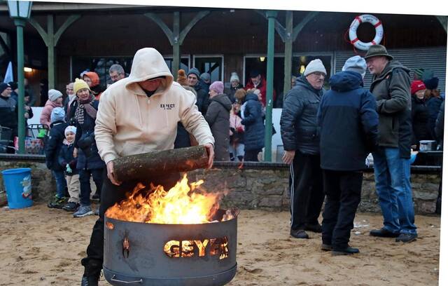 Im Strandbad war alles bestens vorbereitet. Rund 25 Mitglieder der Wasserwacht standen am Grill und sorgten auch sonst für das leibliche Wohl der Besucher. Heiße Getränke standen bei der Eiseskälte besonders hoch im Kurs. Und wer wollte, konnte sich zwischendurch an einer der Feuerschalen aufwärmen.