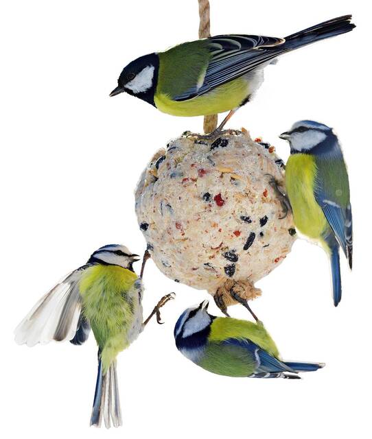 Meisenknödel bieten eine gute Energiequelle. Hier ist jedoch Vorsicht geboten: Im Netz können sich die gefiederten Besucher verfangen. Knödel ohne Netz sind deshalb besser. Die lassen sich einfach selbst herstellen: aus einem Stück Kordel, Rindertalg und Sonnenblumenkernen. Vogelfreunde sollten außerdem darauf achten, dass fertige Futtermischungen keine Ambrosia-Samen enthalten. Die Pollen dieser eingeschleppten Pflanze können schwere allergische Reaktionen auslösen.