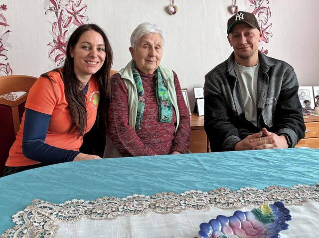 Ursula Arndt (M.) mit Karolin Jennrich und Sandro Thomas in ihrem Zuhause. Foto: Thomas Wölker