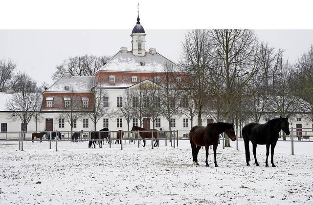 Die Kälte sei für die jungen Pferde übrigens kein Problem, versichert er. „Den Abfohlstall haben wir ein bisschen geheizt.“ Ansonsten sorgen die Stuten selbst für Wärme – einfach durch ihre Körper. „Das ist ein Temperaturunterschied von über 10 Grad von draußen zu drinnen.“ Eben das führt dazu, dass die Gestütspferde jetzt immer nur kurzzeitig ins Freie kommen, obwohl ihnen ein paar Grad unter Null wenig ausmachen. Das lässt sich jetzt im Hof des Hauptgestüts beobachten: alles sehr entspannt, wie zu jeder anderen Jahreszeit auch.