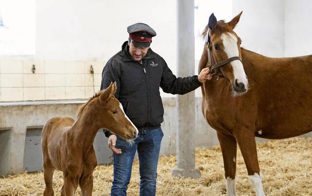 Als Stutenmeister ist er im Gestüt für den Nachwuchs verantwortlich. Für ihn und seine Kollegen hat mit der ersten Geburt jetzt sozusagen der Frühling begonnen. Und der bringt viel Arbeit. Bis in den Mai hinein erwartet das Gestüt insgesamt 34 Fohlen. Die halten sich bei der Geburt nicht an Dienstpläne. Wenn eine Stute entsprechende Anzeichen zeigt, muss das Team jederzeit bereit sein. „Wir haben dann eine Nachtwache“, erklärt Voigt.