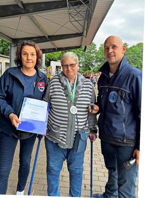 Im Verlauf des Vormittags gab es noch einen besonderen Programmpunkt: Barbara Pusch erhielt aus den Händen von Kreissportbund-Geschäftsführer Tino Gerloff und Christina Rätke die Ehrennadel in Silber des Kreissportbunds für ihren großen Einsatz und ihre vorbildliche Arbeit als Trainerin und Abteilungsleiterin in der Abteilung Behindertensport beim SV Empor/Grün Rot Wittenberge. Übrigens: Der Landessportbund würdigte schon am Brandenburg-Tag das Engagement des Kreissportbunds für Integration. Jörg Schneider vom Landessportbund übergab an den Kreissportbund die Anerkennung als „Integration Stützpunktverein“. dre