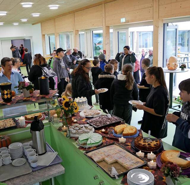 Danach begrüßte Schulleiterin Kerstin Kotysch die Gäste. In ihrer Ansprache blickte sie auf die Entwicklungen der letzten Jahre zurück – von der Genehmigung des Anbaus im Jahr 2018 durch den Kreistag über den Baubeginn 2020, die coronabedingten Verzögerungen bis hin zur Fertigstellung im Jahr 2024. „Mit diesem Anbau haben wir neue Räume für ein modernes Lernen geschaffen“, so Kerstin Kotysch. Der Spatenstich für den letzten Bauabschnitt, die neue Außensportanlage, soll noch erfolgen. Der neue, u-förmige Bau schließt direkt an das Hauptgebäude an. Hier entstanden moderne Räume fürs Lernen und Begegnen. Neben Klassenzimmern, einem Förderraum und einem Sportbegegnungsraum findet man dort unter anderem eine helle Mensa, das Lehrerzimmer, die Büros der Schulleitung und der Schulsekretärin. „Der Neubau rahmt den Schulhof – das wirkt lebendiger“, sagt Ines Winterfeld.