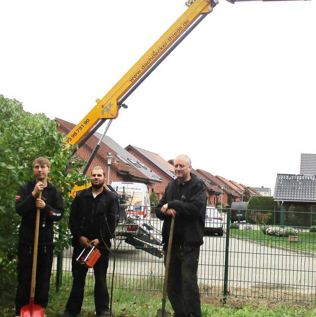 Dachdeckermeister Ronald Thiede (rechts) und zwei seiner Mitarbeiter pflanzten den Pflaumenbaum.Foto: Claudia Ziggel/Stadt PerlebergPerleberg. Ein Obstbaum, genauer gesagt ein Pflaumenbaum, steht nun auf dem Gelände der Kita „Knirpsenland“. Gepflanzt haben ihn Ronald Thiede, Geschäftsführer der Dachdeckerei „Thiede & Sohn“, und zwei seiner Mitarbeiter im Rahmen der „Baumpflanz-Challenge“. Das Projekt ist eine inzwischen sehr beliebte Social-Media-Aktion, die ihren Ursprung bei den Feuerwehren, insbesondere den Jugendfeuerwehren, hatte. Inzwischen beteiligen sich auch Vereine und Unternehmen.Ziel der Aktion ist es, das Bewusstsein für Umweltschutz und Nachhaltigkeit zu fördern und den Teamgeist zu stärken. Die Nominierung zur Teilnahme an der „Baumpflanz-Challenge“ kam für das Perleberger Dachdecker-Unternehmen von der Firma Ed. Prosch KG. Um den Kindern der Stadt Perleberg eine Freude zu bereiten, haben sich Ronald Thiede und seine Mitarbeiter für die Kita „Knirpsenland“ entschieden. Mit großer Technik und Pflaumenbaum sind die Männer in die Kita gefahren, denn der Baum musste mit einem Kran auf das Kita-Gelände gehoben werden. Die Kita-Kinder sahen zu, wie der Baum gepflanzt und angegossen wurde. Sie freuen sich schon jetzt auf das kommende Jahr, wenn er vielleicht schon erste Blüten trägt.„Dank des gepflanzten Baumes können unsere Kinder später hier ihre eigenen Pflaumen ernten“, sagt Kita-Leiterin Claudia Ziggel. Der Dank gilt der Dachdeckerei Thiede und Sohn für den Baum und dem damit verbundenen Engagement für die Kita „Knirpsenland“. Die Aktion soll fortgesetzt werden. Die Dachdecker nominierten mit dem Autohaus Koch, der Baufirma Ludwig und der Firma Velux drei weitere Firmen aus der Region. dre