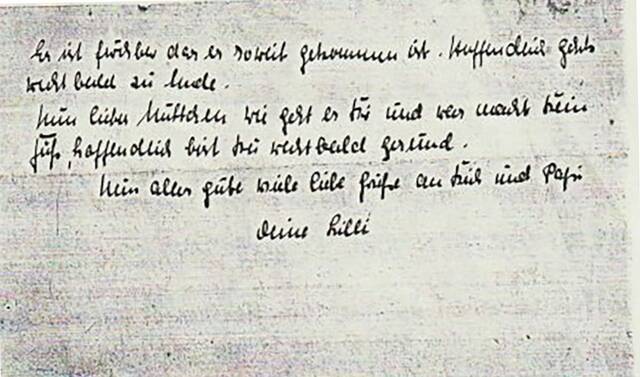 In einem der letzten Briefe, den Lilli Wosnitzka am 26. Februar 1945 an ihre Mutter gerichtet hatte, schrieb sie: „Es ist furchtbar, daß es soweit gekommen ist. Hoffentlich gehts recht bald zu Ende. […] Nun alles Gute viele liebe Grüße an Dich und Papi Deine Lilli“.