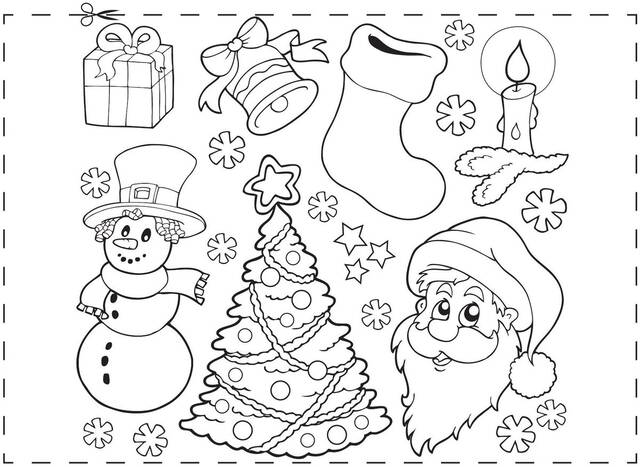 Habt ihr, liebe Kinder, schon in eure Stiefel geschaut? War der Nikolaus bei euch und hat euch schöne Geschenke gebracht? Er war auch bei uns und hatte einiges im Gepäck, wie ihr auf dem Bild sehen könnt: Glocke, Geschenk, Kerze, Tanne… An alles hat er gedacht. Nur die Farben hat er vergessen. Wollt ihr ihm helfen? Dann schnappt euch eure Buntstifte und malt alles ganz bunt aus. Das sieht dann gleich viel besser aus.