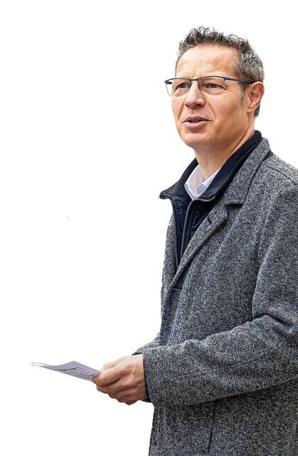 Ingo Schlender erinnerte in seiner Rede an die Gründungszeit der Banken, als Friedrich-Wilhelm Raiffeisen und Hermann Schulze-Delitzsch die Genossenschaft aus der Taufe hoben. „Seitdem haben wir mit unseren Mitgliedern viele Währungen erlebt: die Rentenmark, die Reichsmark, die DDR-Mark, die D-Mark und jetzt den Euro.“ Die Skulptur stelle den Kreislauf des Geldes und den Wert gemeinschaftlichen Handelns dar. Es gehe um Vertrauen, Zusammenhalt und Gemeinsinn.