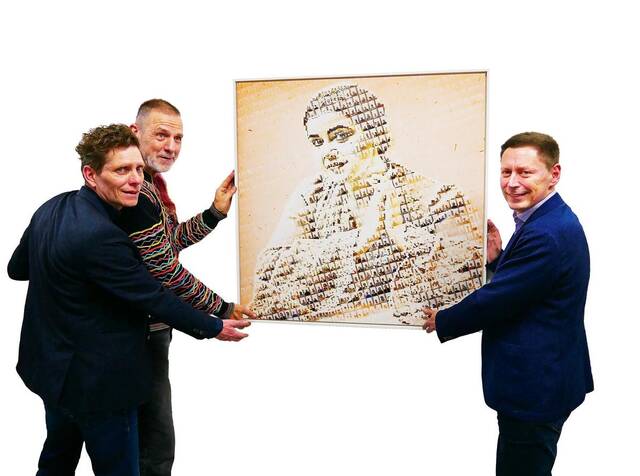 Der zukünftige Ort wird nun wohl erst in den nächsten Monaten entschieden werden. Nach der offiziellen Begrüßung und der Schenkung der Lotte-Lehmann-Collage kommen die Besucher miteinander ins Gespräch. Torsten Kaiser muss dabei immer wieder Fragen zu seinem Werk beantworten, erklärt noch einmal dessen Entstehung. Rolf Sellmann hingegen steht vor seinen Collagen, die er seit Corona geschaffen hat. Die ersten seien damals entstanden, „als wir ja so gut wie nicht raus durften“. Und so habe er Zeitungen zerrissen und zerschnitten und diese surrealistischen Papiercollagen geschaffen. dre