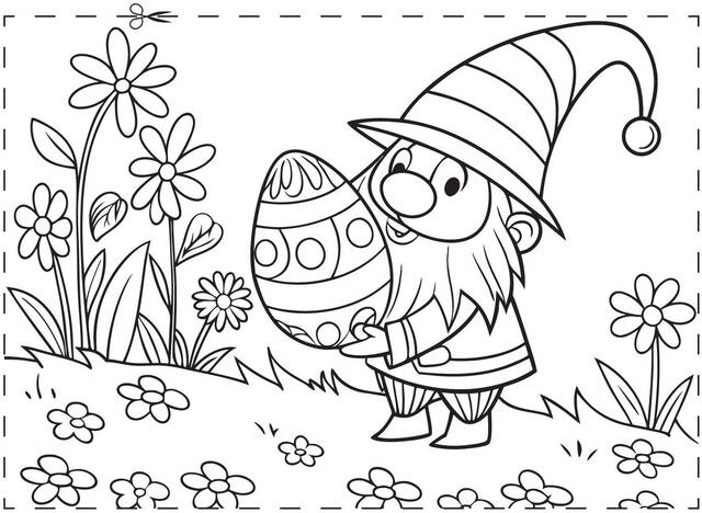 Das Osterfest rückt immer näher. Sogar der kleine Wichtelmann auf unserem neuen Ausmalbild hält ganz stolz ein großes Osterei in den Händen. Aber fällt euch auf, was bei diesem schönen Osterbild fehlt? Na klar! Da muss Farbe rein. Was meint ihr, liebe Kinder, habt ihr Lust, das Bild mit ganz vielen Farben auszumalen? Die Blumenwiese, der Wichtel und natürlich das Osterei – sie warten darauf, schön bunt ausgemalt zu werden. Schnappt euch eure Malpinsel und Buntstifte und legt los! Gebt dem Bild so viel Farbe wie ihr wollt.
