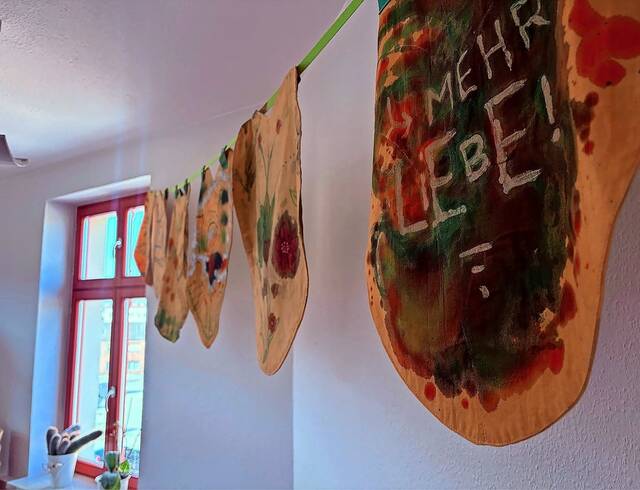 „Wir haben schnell festgestellt, dass die Aktion in Wittenberge gut ankommt“, berichtet das Team des „mobilen Kunstraums“. Was zunächst mit einer einzelnen Näherin und einem Aufruf nach alten Textilien begann, hat sich inzwischen zu einer engagierten Gemeinschaftsaktion entwickelt. Der kreative Prozess besteht aus mehreren Schritten: Zunächst werden gespendete Stoffe gefärbt und zugeschnitten. Anschließend näht die Nähgruppe des Mehrgenerationenhauses Bürgerzentrum Wittenberge daraus die Blütenblätter, die von Teilnehmern bei Veranstaltungen individuell verziert werden können. Bereits im vergangenen Jahr war der „mobile Kunstraum“ mit der Aktion auf Veranstaltungen vertreten, darunter die Festspielwoche sowie das Stadt- und Hafenfest. So sind inzwischen über 40 Meter Girlanden entstanden, berichtet Löber. Diese kamen bereits bei mehreren Anlässen zum Einsatz, etwa beim Rathausfest dieses Jahr und beim Lichtersonntag im vergangenen November. Ein besonderer Dank gelte der Nähgruppe des Mehrgenerationenhauses Bürgerzentrum Wittenberge, so Hausmanagerin Doreen Schulz: „Nach einem Aufruf hat sich die Gruppe schnell gefunden und organisiert ihre Treffen inzwischen selbstständig. Wir stellen unter anderem den Raum und die Nähmaschinen zur Verfügung.“